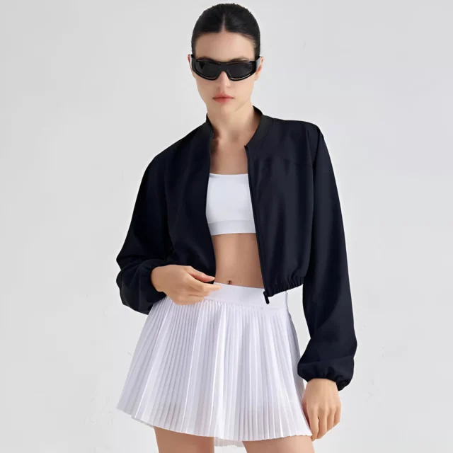 This jacket features a full-length zipper for easy wear and ventilation, along with a removable chest pad that provides customizable support and comfort. The slim yet slightly loose fit flatters every body type, while the shockproof and breathable design ensures maximum comfort during high-intensity sessions. Perfect for layering, it’s ideal for all seasons—whether you’re cooling down after a run or heading out for a brisk morning walk.