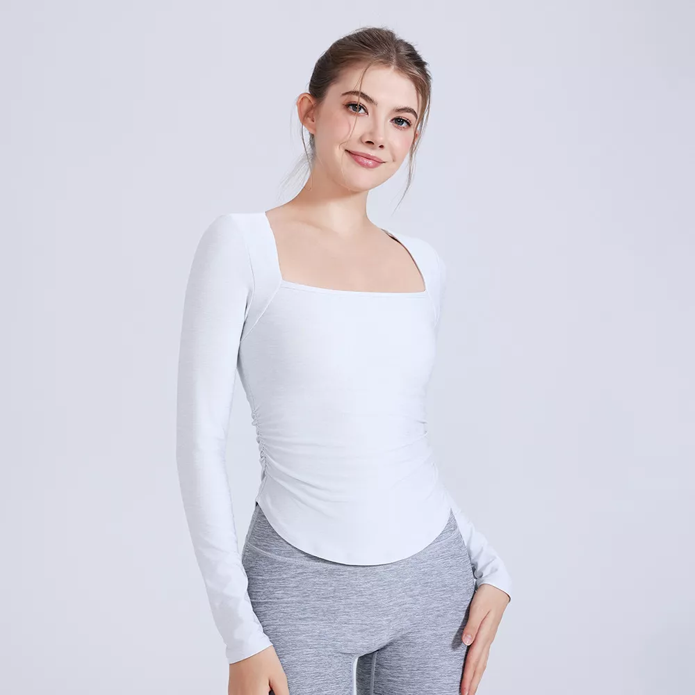 This yoga shirt isn’t just a piece of activewear – it’s a versatile companion for every fitness activity. Whether you’re stretching in a morning yoga class, hitting the gym, or jogging outdoors, its breathable and flexible fabric ensures you stay comfortable. The stylish square neckline and supportive chest pads give you confidence while maintaining a sleek silhouette. Easy to pair with leggings, shorts, or sweatpants, this shirt transitions effortlessly from workout to casual wear.