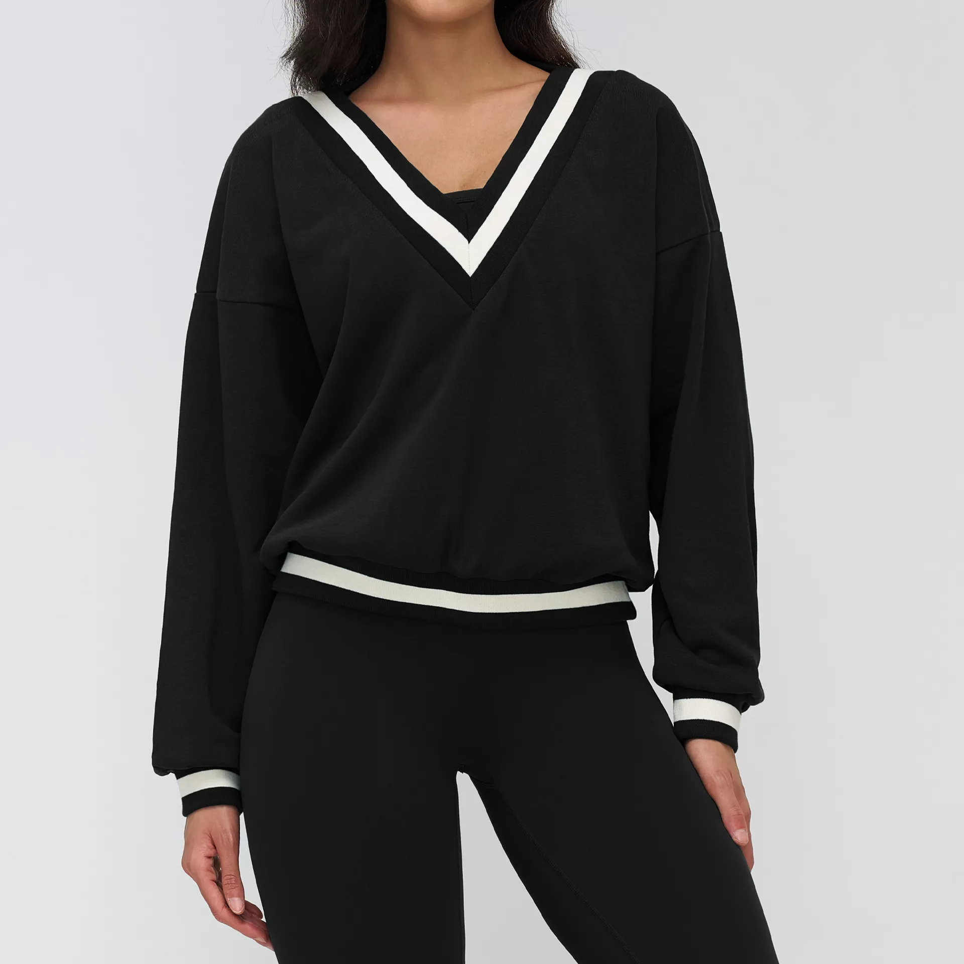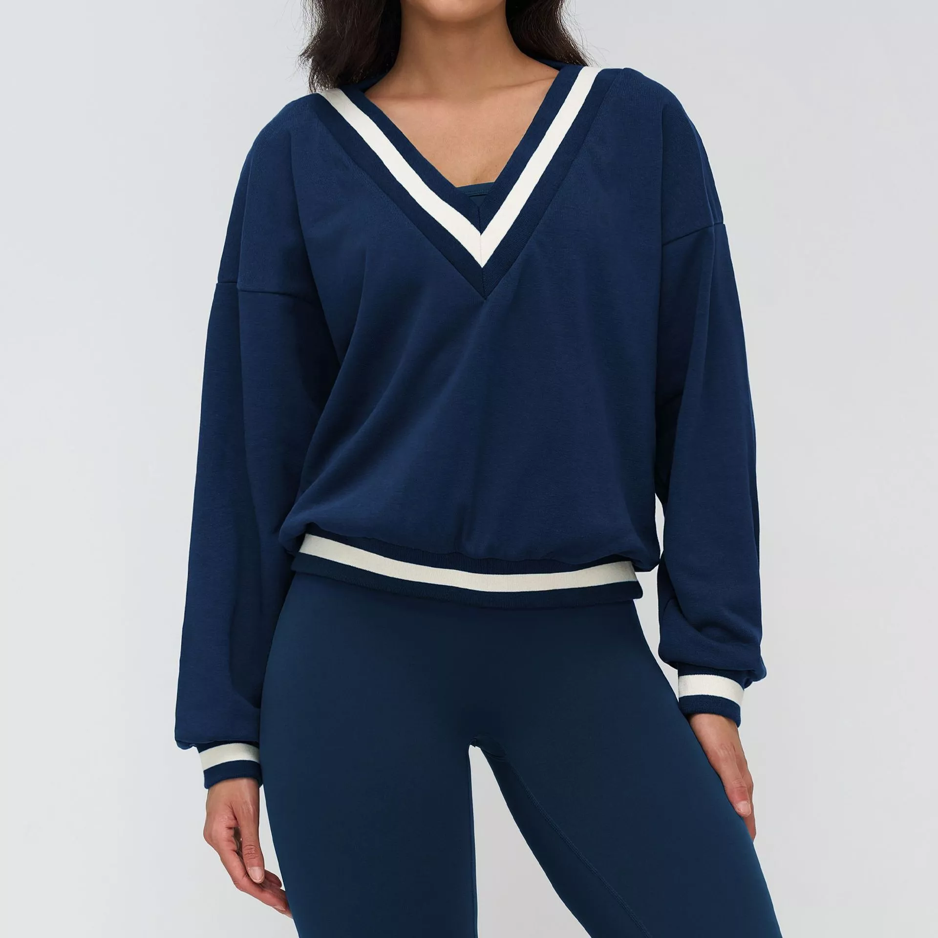 Move freely, feel confident, and look effortlessly put together with this women’s long sleeve V-neck yoga hoodie. Designed for modern women who want comfort without sacrificing style, this versatile top blends a relaxed silhouette with a flattering V-neck for an easy, feminine look. The soft knit fabric feels gentle on the skin while offering just the right amount of warmth, making it a perfect go-to for cooler days and cozy workouts.